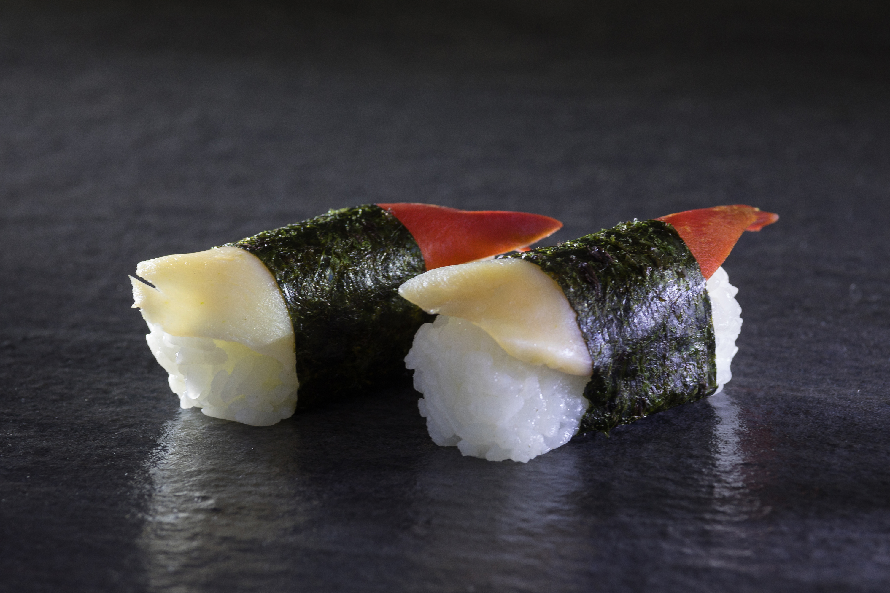1. Krebsfleischimitat aus Fischmuskeleiweiß geformt