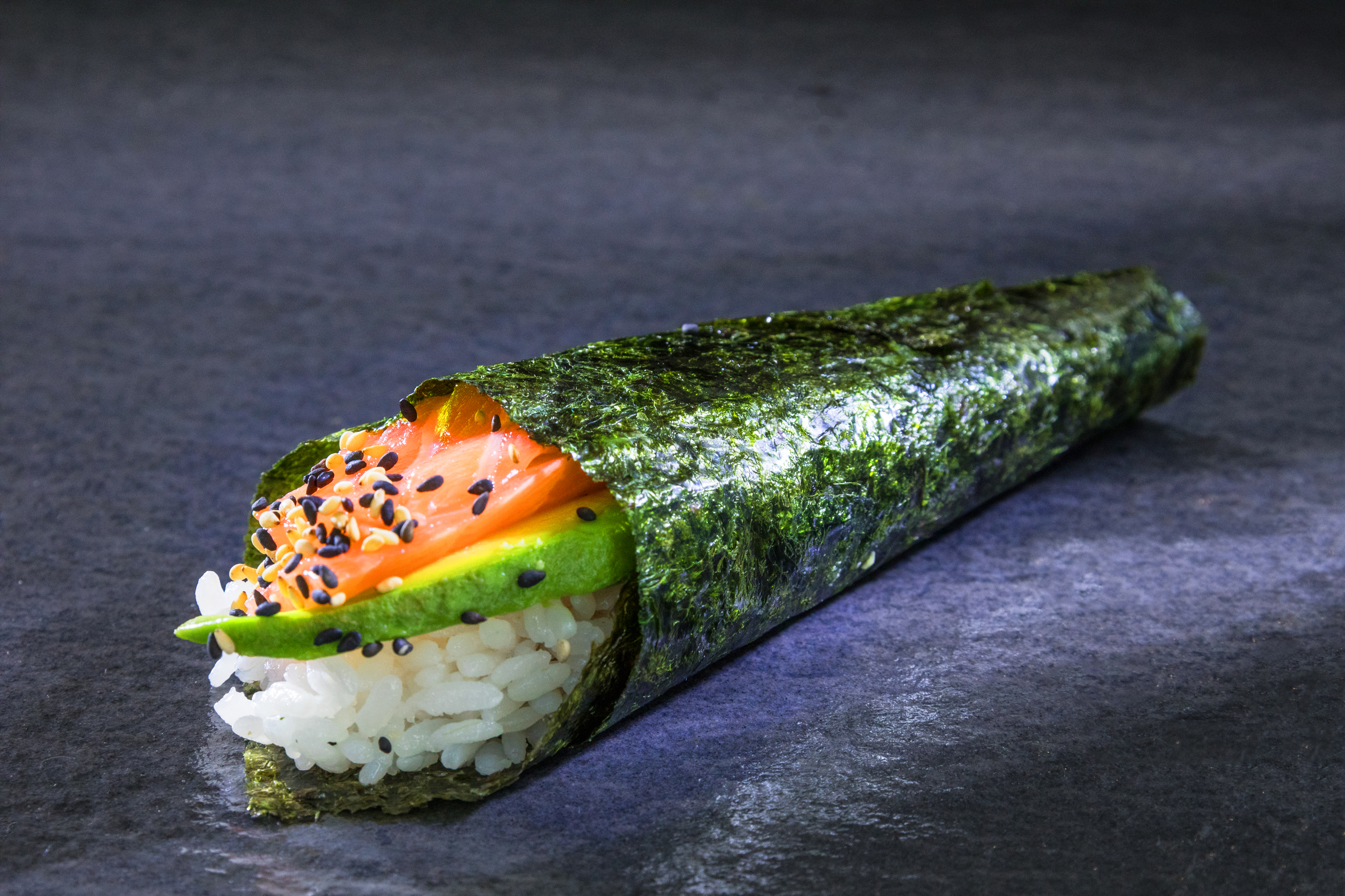 Lachs Avocado Temaki (2 Stück, Hand Roll)